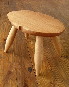 お芋シリーズは踏み台をテーマにしたときに作り始めたもので、上に乗ったときに安定するよう設計しています。脚がグイッと踏ん張っているのが特徴です。もちろん大人が乗っても大丈夫。自宅のブレーカーがよく落ちるので重宝していますという方がいらっしゃいました。